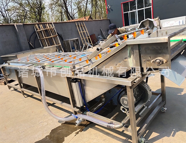 本机适用于食品加工企业,适用于含泥或其它杂物比较多的大个物料。本设备外箱呈六边形,侧边装有有机玻璃,供观察。滚筒内部装有毛刷板,上部有两组喷淋水管,通过滚筒带动毛刷板旋转,和上部喷淋水的冲洗达到清洗效果。